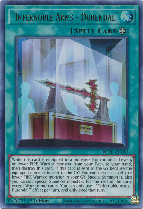 !["Infernoble Arms - Durendal" [ROTD-EN053] Ultra Rare](http://cardboarddiamonds.com/cdn/shop/products/8f23f3f2-4ede-5af7-b480-bc98c091bee4.png?v=1667257903&width=1445)